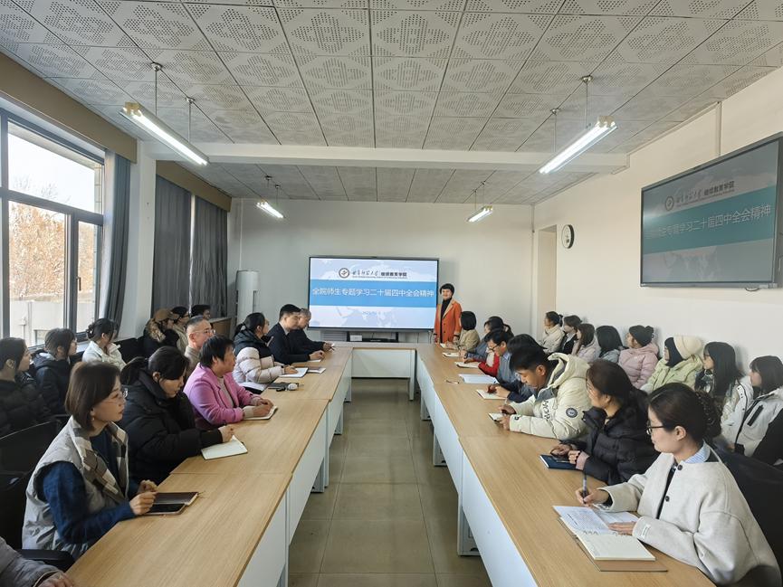 为深入学习贯彻党的二十届四中全会精神,准确把握其核心要义与实践要求,引导广大师生切实把思想和行动统一到中央决策部署上来,根据学校党委统一安排,12月5日上午,彩票平台大全