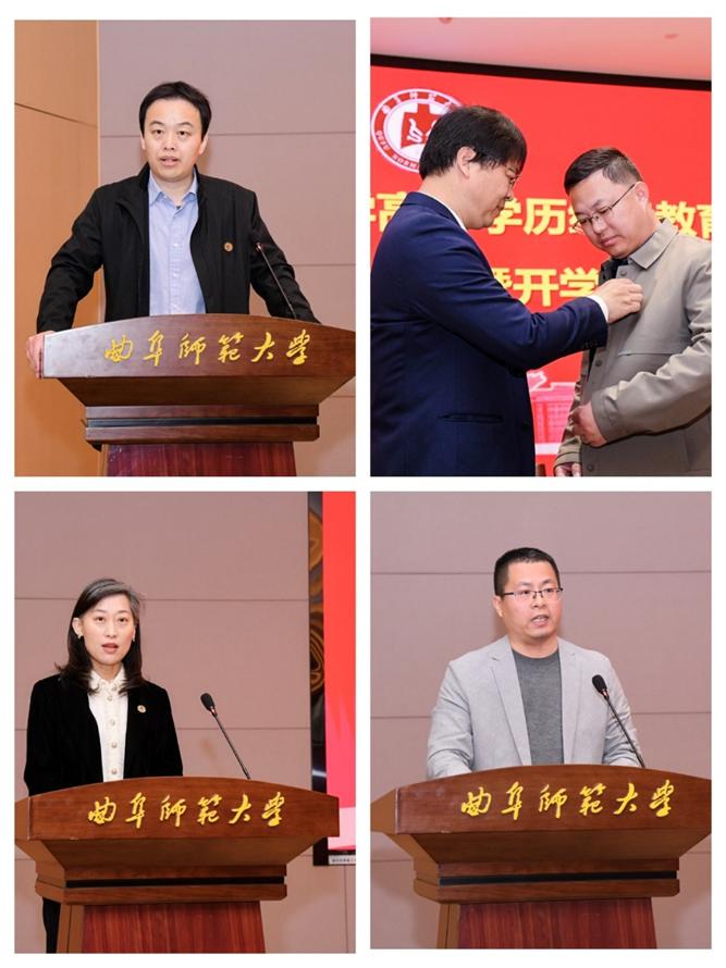 张金圈教授,新生代表孔丝丝同学,校外教学点代表、汶上县高级职业技术学校李中乐老师先后发言。张金圈教授结合治学与育人经验,寄语新生锤炼“命名”能力、深化“理解”深度、坚守求学品格,以文字为舟、以思想为桨奔赴广阔人生;孔丝丝分享了在职备考的经历,代表全体新生承诺将珍惜学习机会,平衡工学与家庭矛盾,实现学历与能力双重提升;李中乐介绍了所在教学点的办学情况与成果,对新生提出做“有定力”的求学者、“善转化”的践行者、“有温度”的共同体的希望,并承诺校外教学点将与学校紧密协作,做好教学与服务工作。