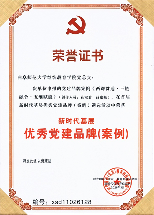 报送的党建工作案例《两课贯通•三链融合•五维赋能》(创作人员:茌淑君、吕建强)凭借鲜明的特色、扎实的举措和显著的成效,在31246个参赛案例中脱颖而出,荣获新时代基层优秀党建品牌(案例),充分展现了彩票平台大全