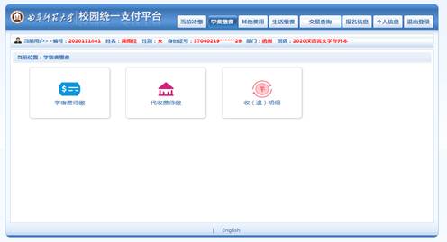 3.点击“学费缴费”,出现学宿费待缴。
